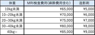 *体重、検査内容および追加治療(注射、内服薬の処方)などにより費用が増減する場合があります。
